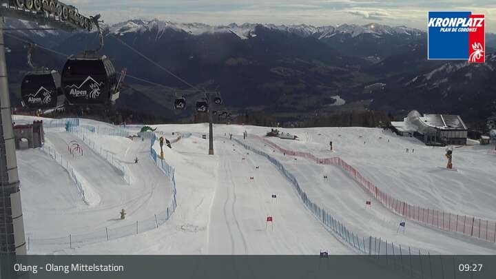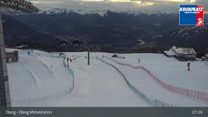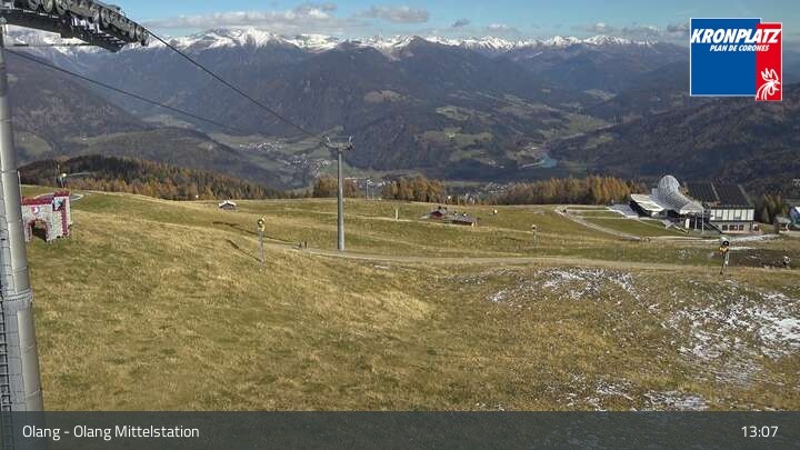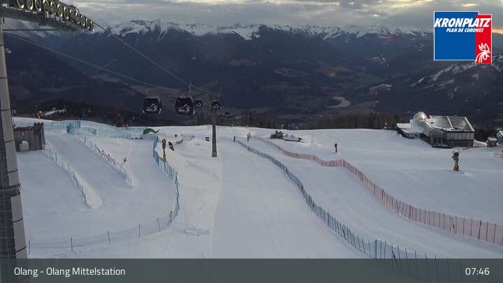Here you can see the mid-station of gondola Olang as well as the surrounding mountain-scape of Kronplatz.
