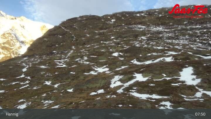 The webcam opens a beautiful view from the top station of Hannig over Saas-Fee in the Swiss canton Valais.
