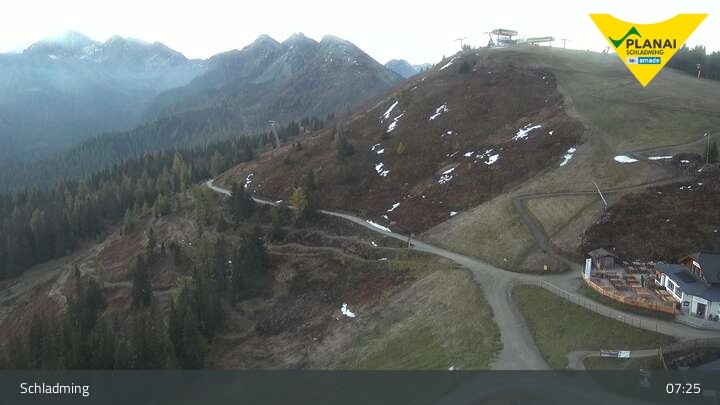 Located at the top station of the Planai gondola the webcam shows Mt. Planai in Schladming.