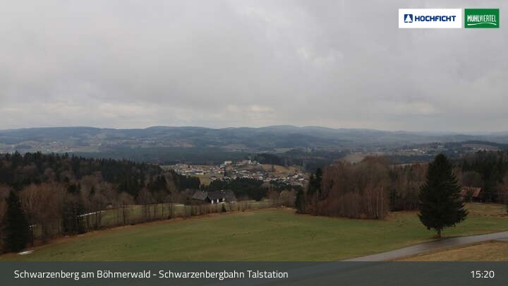 View of Schwarzenberg village in Upper Austria. Der Webcam is located at the base station of the chair lift.