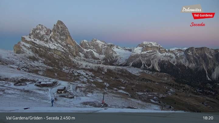 Located at Seceda thes webcam shows you the view towards South facing the mountains of Sella and Langkofel