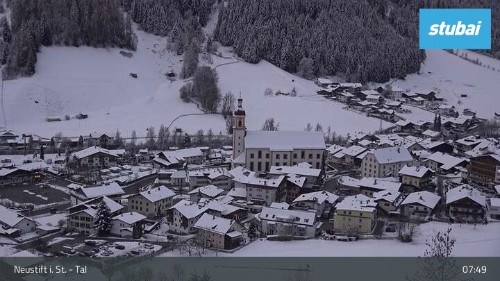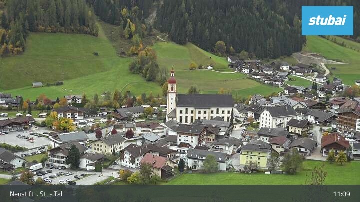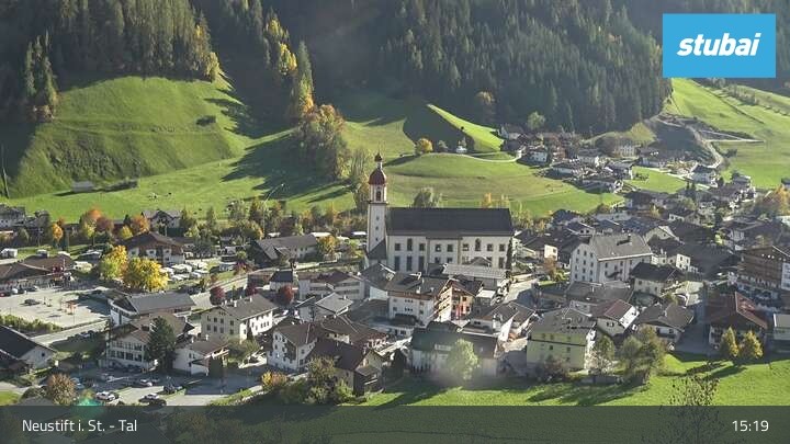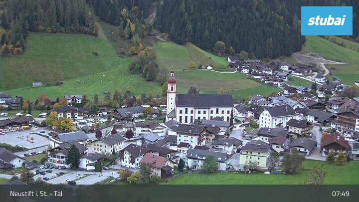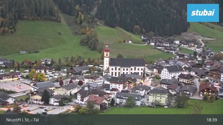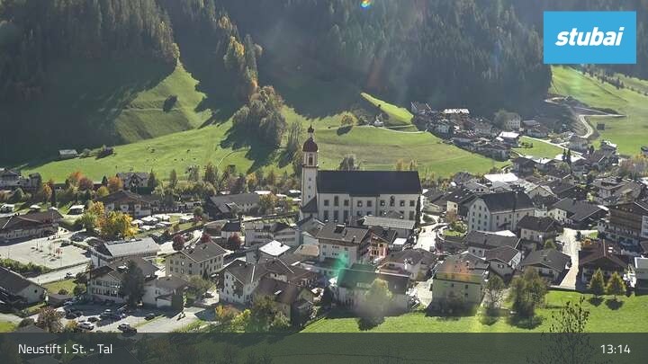 The webcam looks towards the village of Neustift im Stubaital (Stubai valley).
