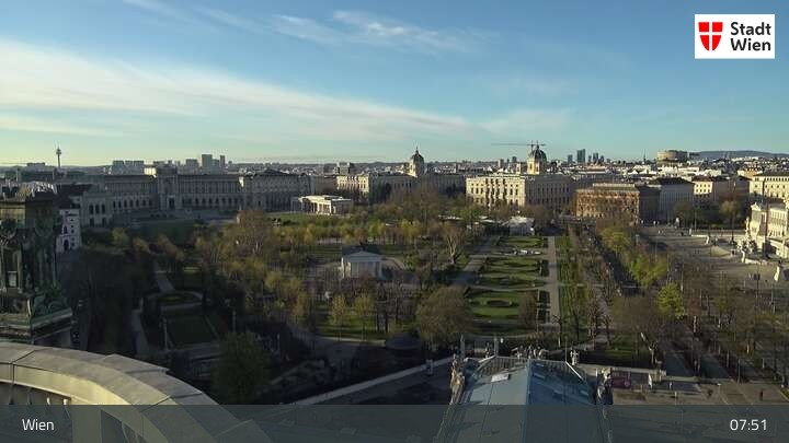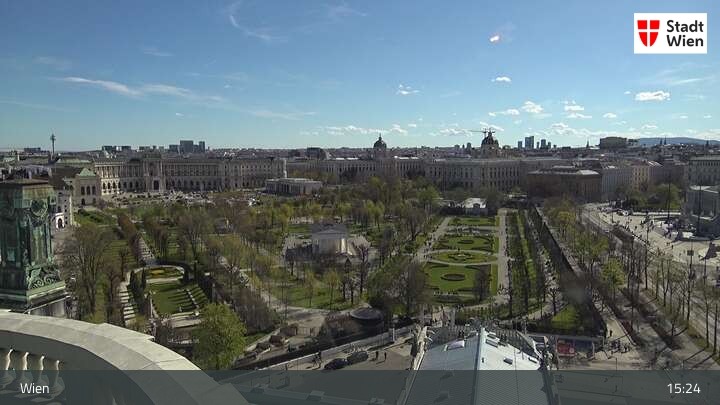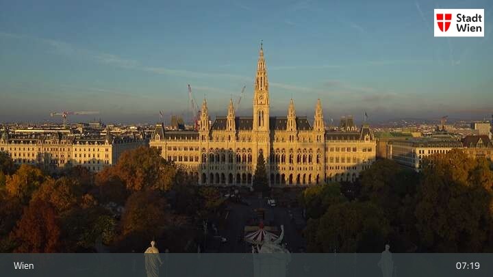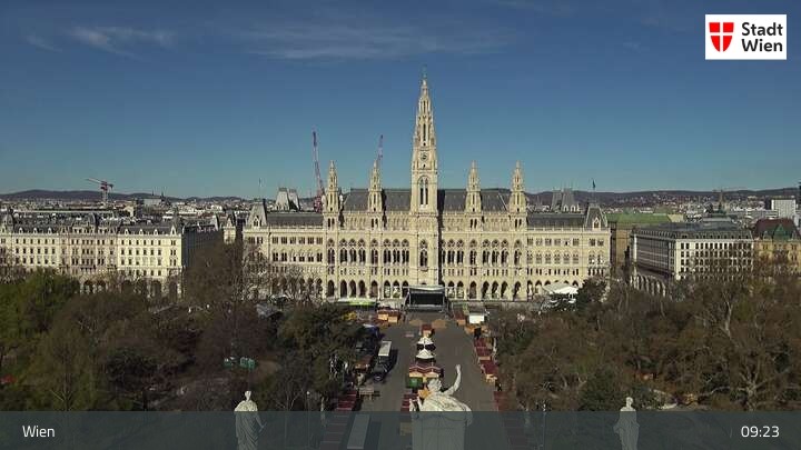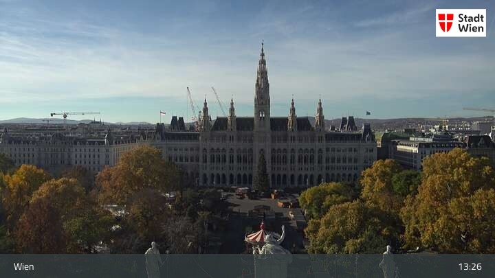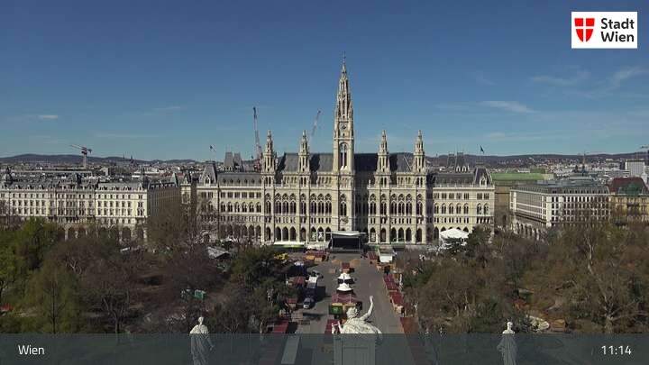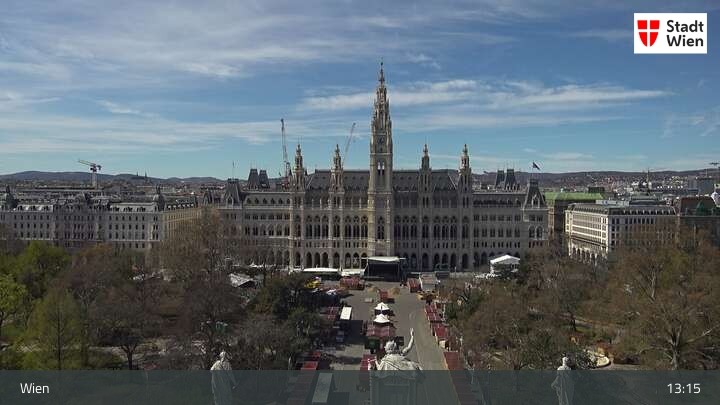 Looking over city centre of Vienna, this webcam shows the Burgtheater as well as the town hall.