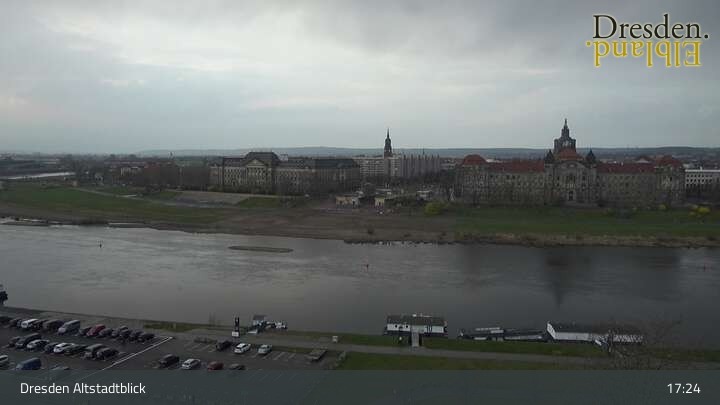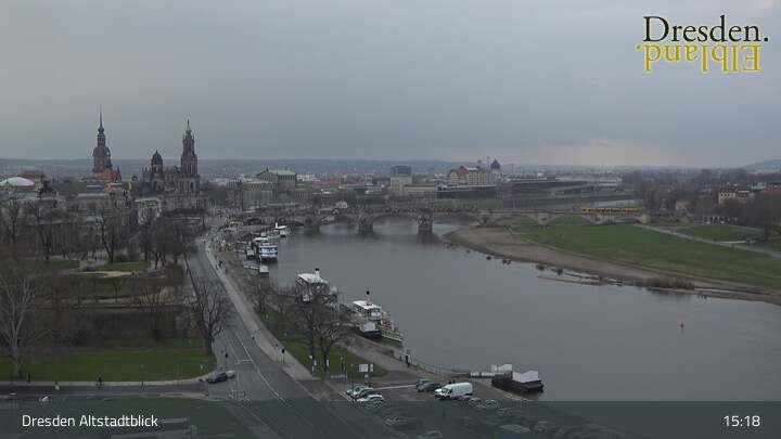 The camera is located at the Hotel am Terrassenufer in Dresden and looks out over the Old Town and the Elbe River.