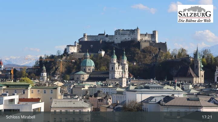 Your view from Mirabellgarten and castle Hohensalzburg in Salzburg, Austria.